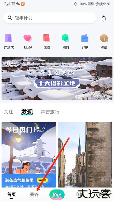 1、打开穷游app,然后选择左下方社区选项,这里以“曼谷”为例,