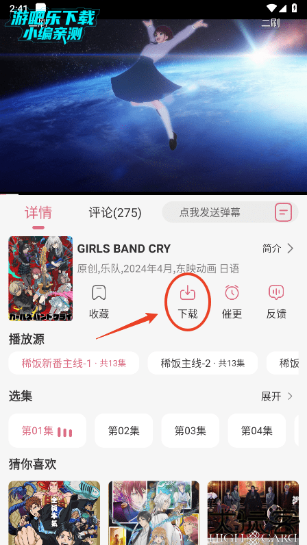 在播放详情页,点击下载按钮;
