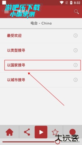 2、接着就会弹出许多的功能,但是如果想要切换国家,就需要点击【广播电台】;