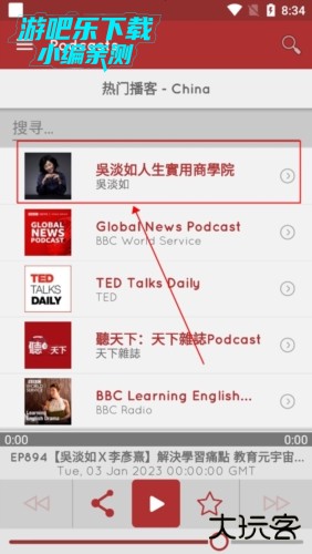 2、寻找到喜欢的播客之后,点击进入会有许多的内容供你选择,接着点击想要收听的集数;
