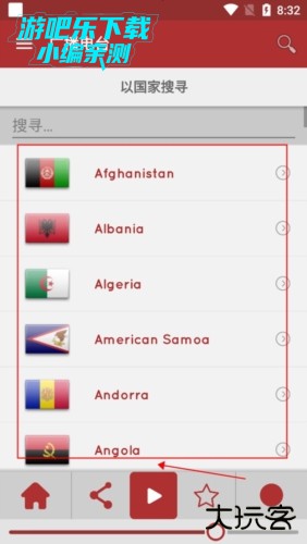 4、最后就会弹出许多的国家了,但是因为是显示英文,所以就可以在搜索栏里输入关键词即可弹出。