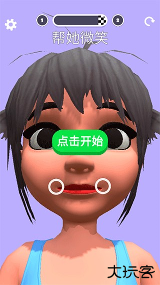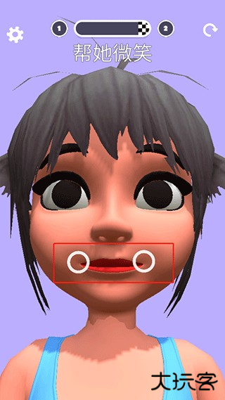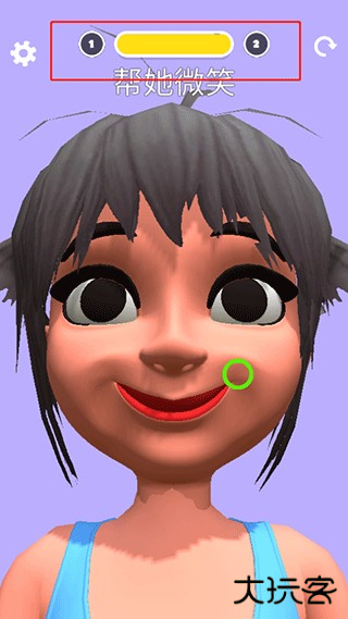 2、拖动圆形拉环来操控面部骨骼,帮助角色微笑完成任务,每个关卡目标不一样