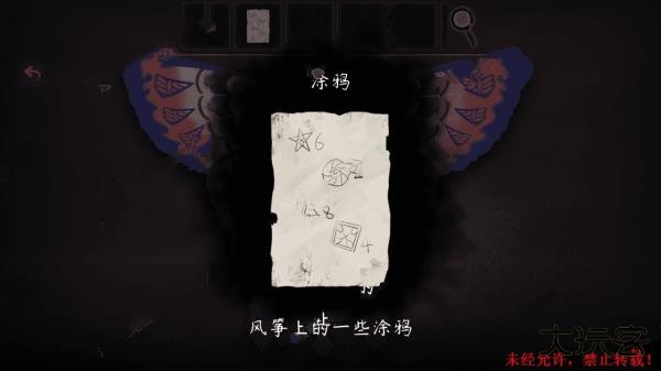 9、然后继续向左走,走到风筝摊,调查风筝,获得一张线索纸(五角星6个,圆形2个,三角形8个,正方形4个)。