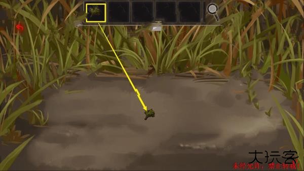 7、向左出去,来到房子左边的草丛处,观察草丛,将【青菜】放在地上,引来【蛐蛐】。