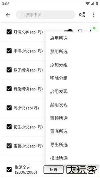 8、现在勾选全部书源,点击“启用所选”即可