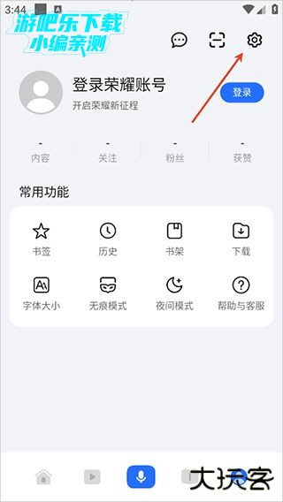 1、用户可以在荣耀浏览器app中点击底部右下角的小人图标