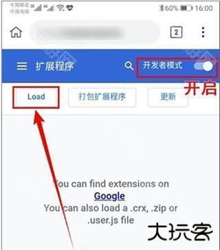 5、在打开的页面中,首先开启【开发者模式】,然后点击【Load】按钮。