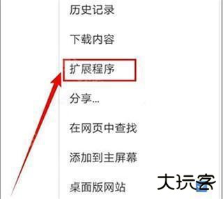 4、在打开的菜单中,点击【扩展程序】。