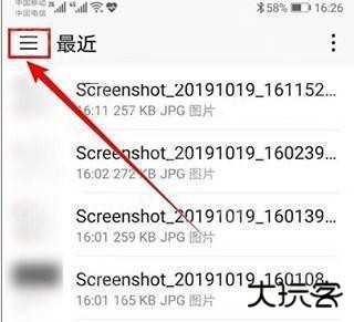 7、在打开的“最近”页面中,点击左上角的三横图标。