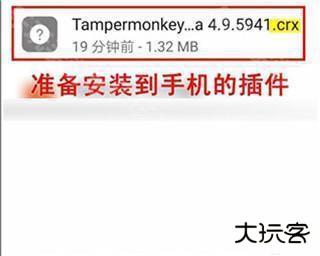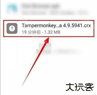 9、然后找到手机中 crx 格式的 Tampermonkey 扩展插件文件,点击他。