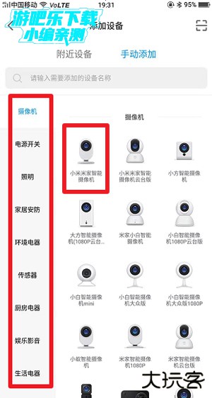 2. 点击添加设备按钮,然后选择要添加的摄像头类型。