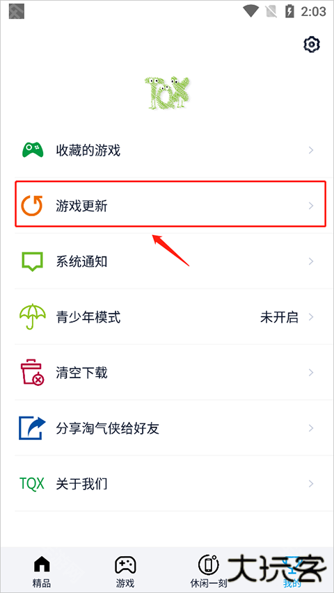 1、点击我的,进入游戏更新;