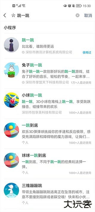 1、首先打开微信,搜索跳一跳小程序,直接打开。