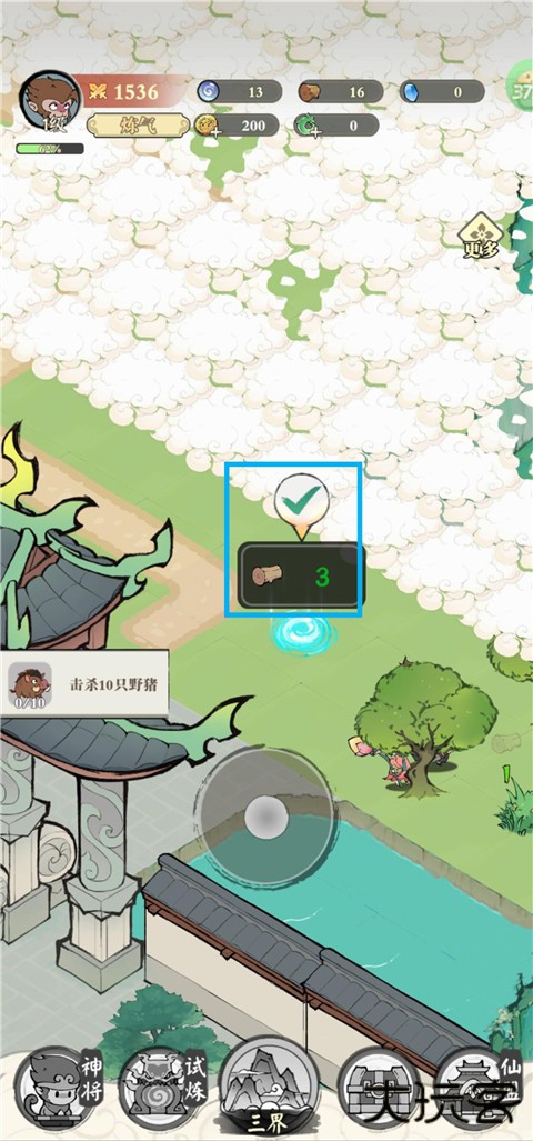 3、该前方的路被迷雾阻挡,用3根灵木即可驱散。