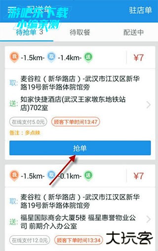 2、进入配送单,然后点击抢单就可以了。