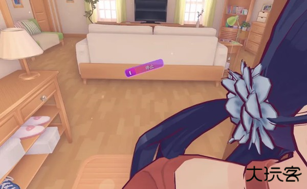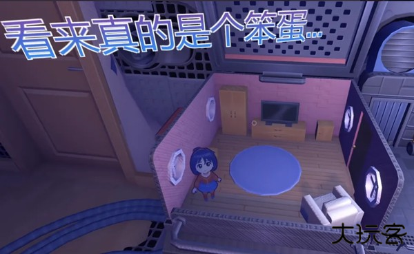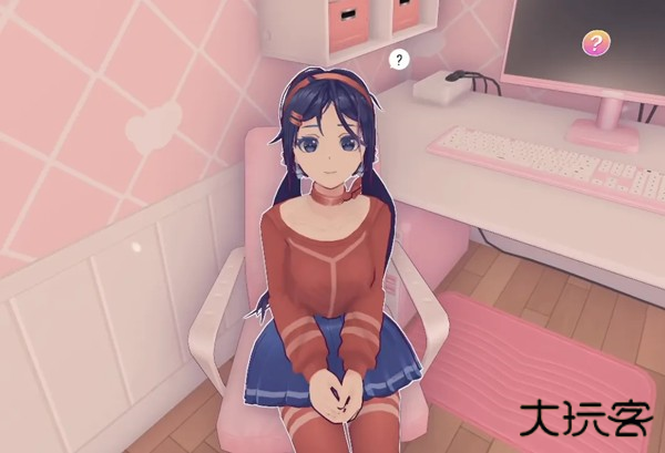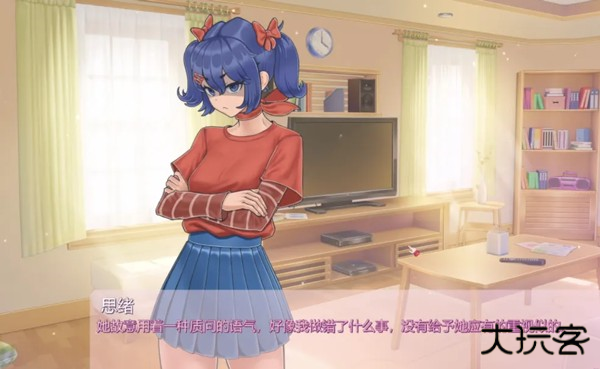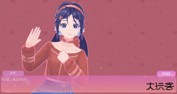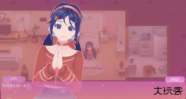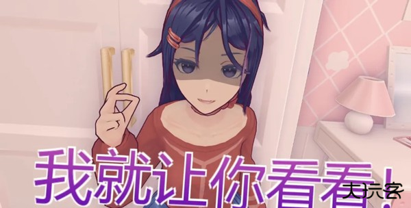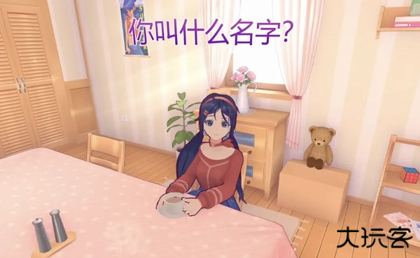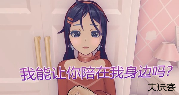 一个扎着双马尾、笑容甜美的3D小人美少女开开心心地朝你打招呼,然后露出羞涩的笑容,问你可以帮她收拾房间吗?