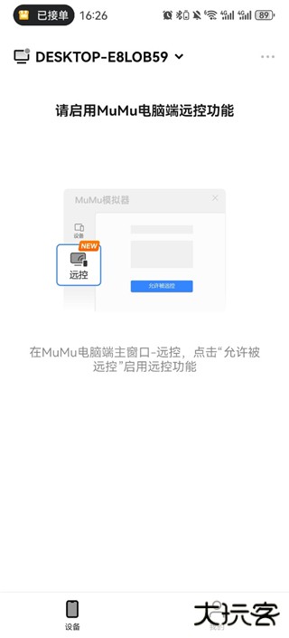 进入模拟器主窗口的「远控]标签页,确认“允许被远控“权限已开启,并连接服务器成功。