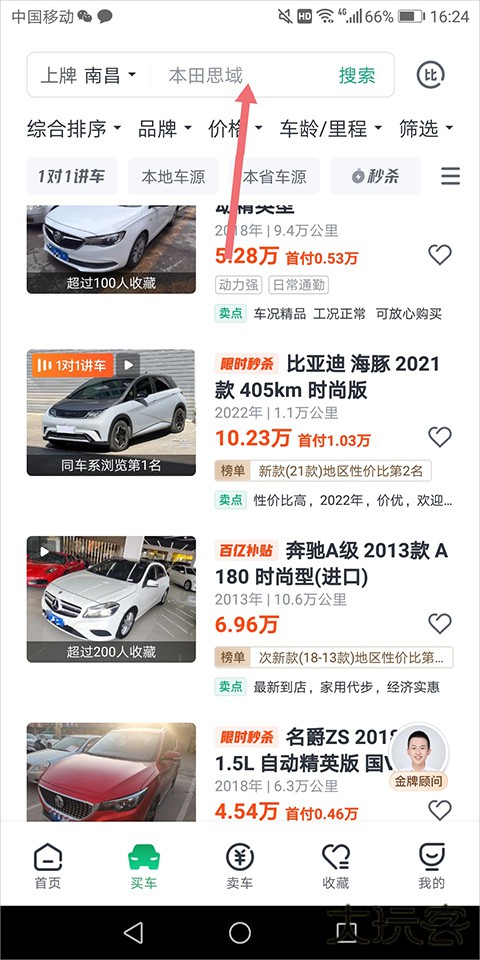 5、实名认证后,用户可前往【买车】页面中通过在顶部搜索框中输入相关车系