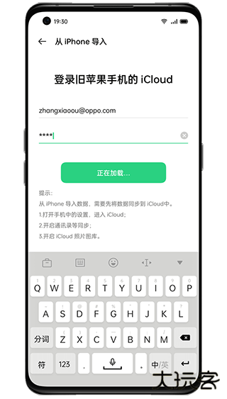 1、打开OPPO手机搬家应用,并选择”从iPhone导入”。输入苹果手机的iCloud账号和密码;