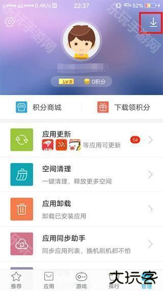 1、进入应用商店页面后,点击右下角的【管理】选项。