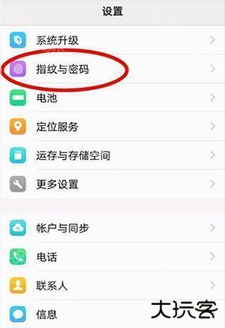 2、在设置页面选择指纹和密码按钮;