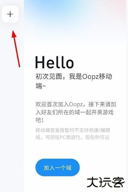 1、进入oopz语音首页,可以直接选择加入一个域,或者点击左上角的【+】。