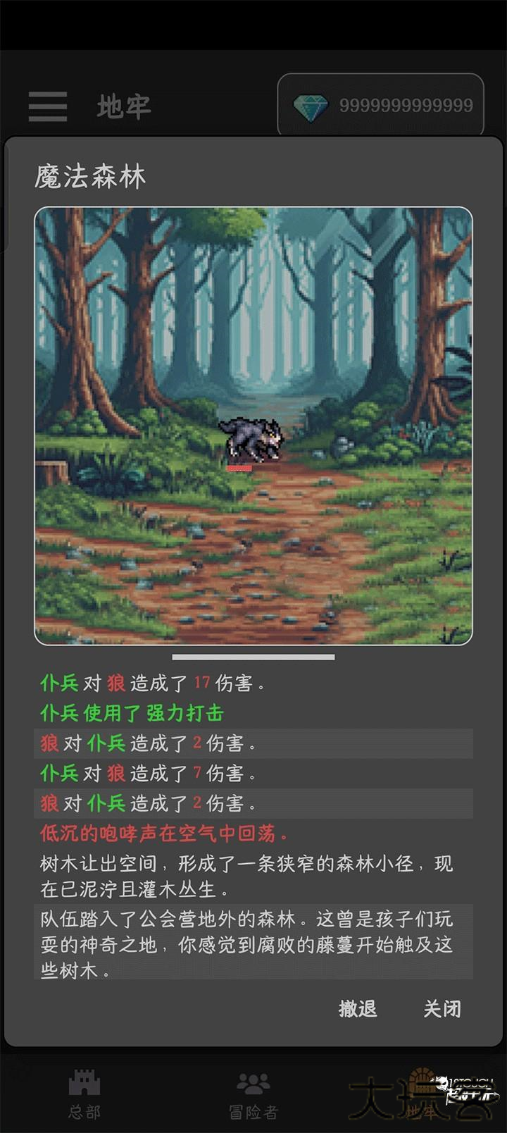3、游戏开始冒险者们会自动进行战斗,玩家也可以选择关闭等一会来收获战利品。