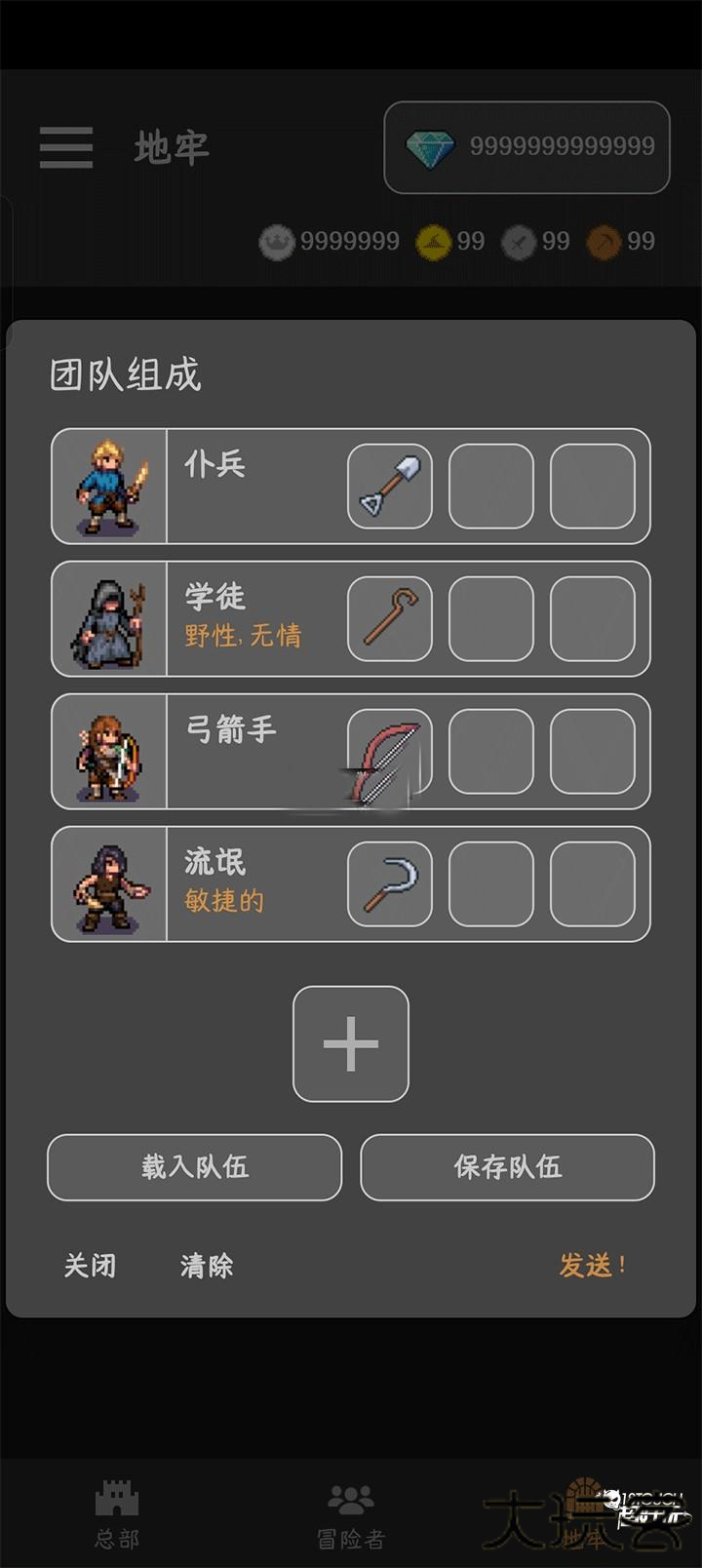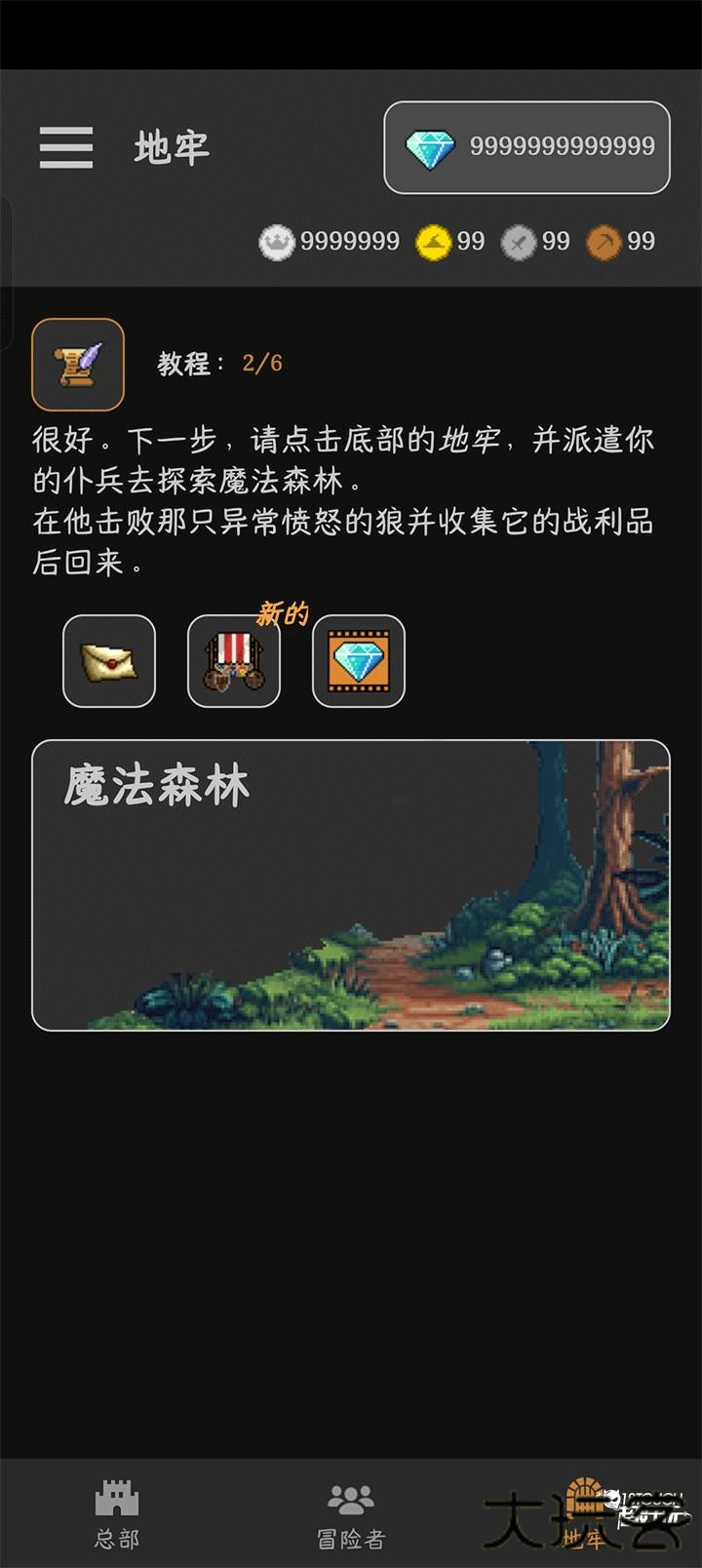 2、招募完后我们就可以点击地牢来进行探险。