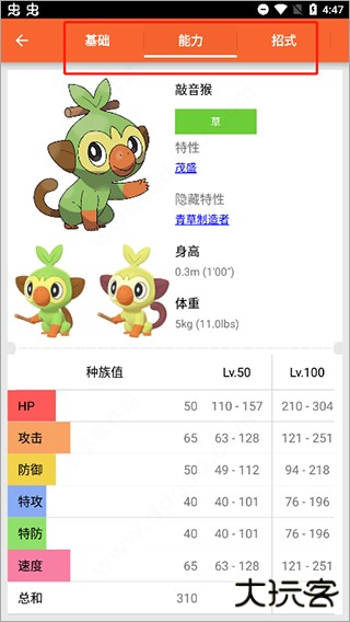 4、点击可查看到基础、能力、招式等多方面数据;