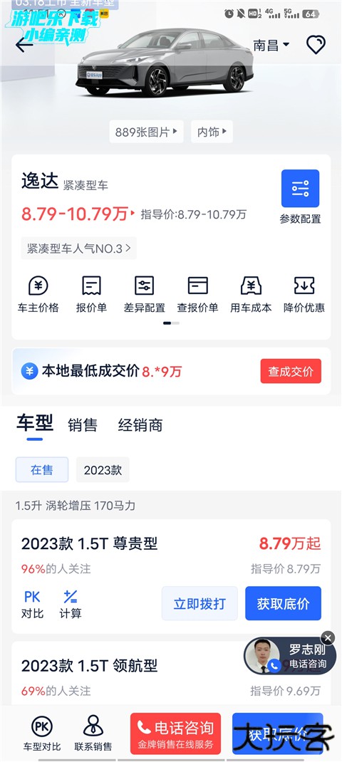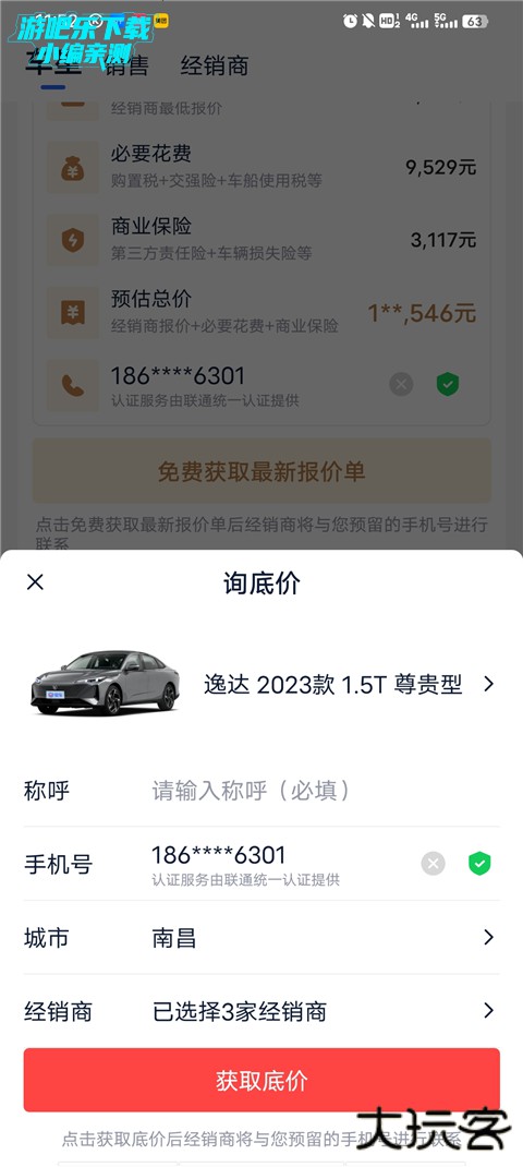 5、如果想要知道底价的话,可以点击最下方获取底价,留下电话和名字,点击查询,之后就会有销售就会电话联系,用户只要进行询问即可。
