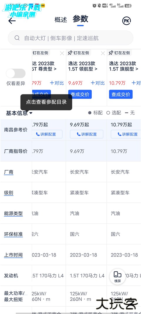 4、我们点击参数配置,里面为用户提供了详细参数、实测、同车型pk、OTA以及一些基本信息的车辆信息;