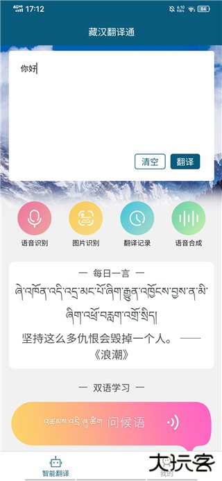 藏汉翻译通是一款功能全面的藏汉翻译工具软件。支持藏汉文本、语音、图片识别等多种翻译方式,集成了丰富的语言学习功能,让用户在翻译的同时也能轻松学习藏语。对于工作、学习还是旅游都是您不可或缺的翻译和学习助手。支持藏汉文本翻译、语音翻译、图片识别翻译等多种便捷的翻译方式。藏汉互译精准高效,同时还支持其他多语种的转换,以满足不同场景下的需求。而且还采用前沿AI技术,为你提供高准确率的翻译结果,确保每一次交流都能顺畅进行。