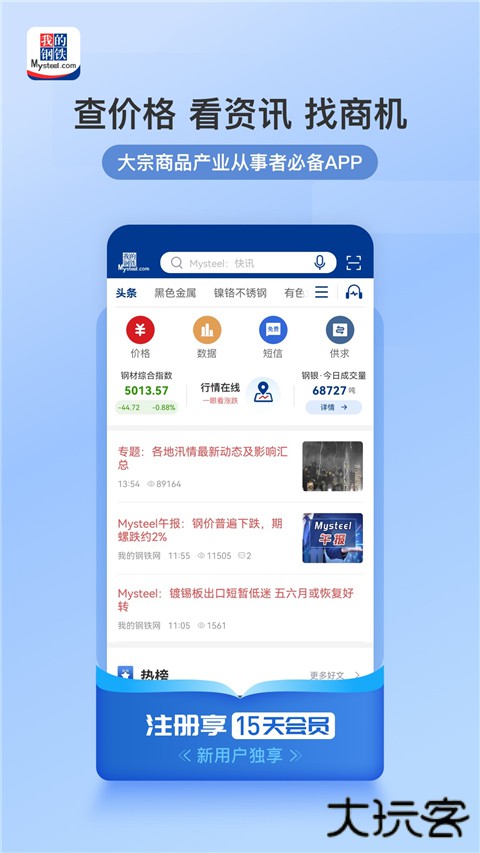 我的钢铁app是一款专注于大宗商品行情报价的服务软件,其中所涉及的产品就包含了钢铁、有色金属、炉料、化工、废钢、不锈钢、煤焦、铁矿石、农产品和能源等方面,基本上我们什么的中所用的资源都在其中。而在价格方面,软件可以说做的相当不错咯,提供了的最全面、权威、即时的大宗商品市场价格呢,这一点相信使用过该夸软件的朋友都十分的情况了。同时为了方便用户们做进一步的分析,平台还同步了三大机构(上期所、大商所、郑商所)数据哦,行情、资讯、分析报告应有尽有相当的贴心。