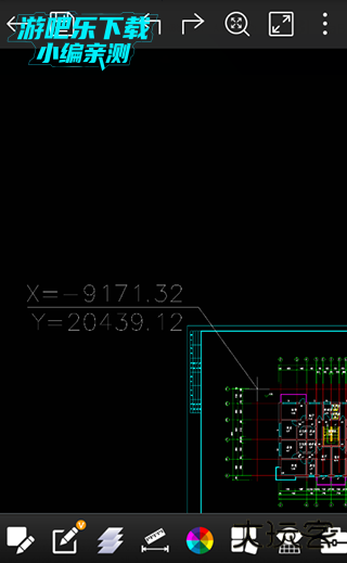 然后在图纸点击需要标注的位置,这个时候单指长按屏幕,可以弹出捕捉框,这样就可以根据捕捉点精确选择需要标注的位置。下方会显示对应的坐标点数字,如果确定坐标点正确,那么在需要标注坐标文字的地方点击一下,就会生成坐标标注。