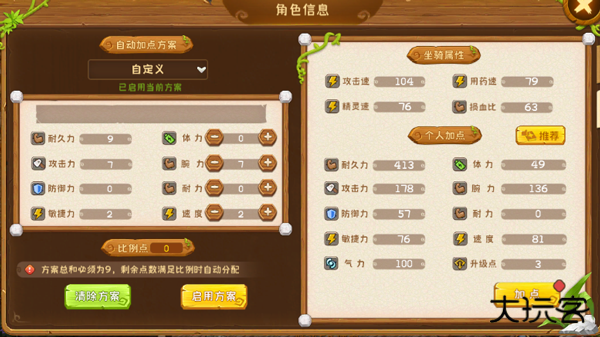 1体力=4耐久力,每10点体力增加1攻击力和1防御力