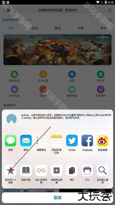 2、在弹出的工具选项中点击【添加到个人收藏】;