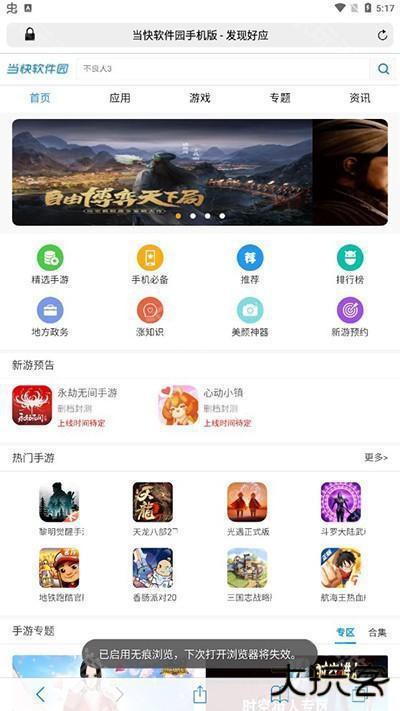 3、此时页面上会显示已启用无痕浏览模式,开启该模式后,用户在关闭浏览器后再次打开时就不会有上次的浏览记录。