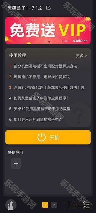 1、在乐玩下载安装好黑猫盒子,点击开机;
