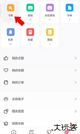 2、来到【我的】界面后,点击左上方的主题按钮