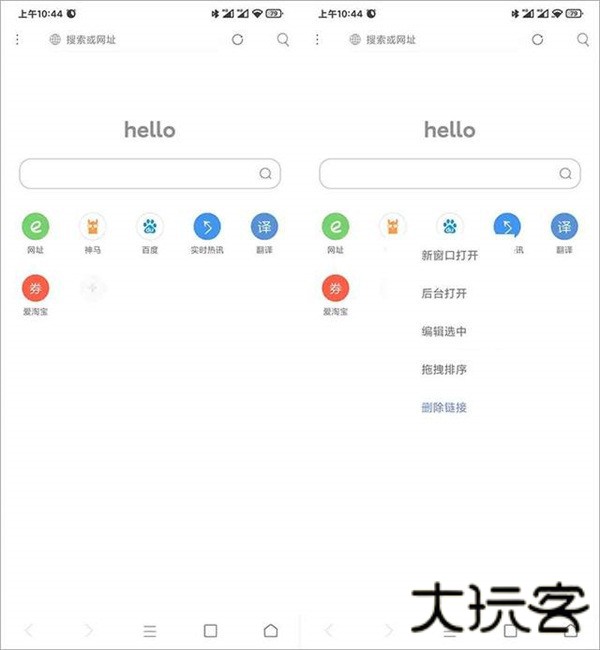 安装好后「米侠浏览器」的默认启动页很清爽干净,不像某些浏览器会推送一些新闻等乱七八糟的功能,如果你对自带的网址不喜欢,可以长按来删除、编辑、或者自己添加一些常访问的网址。