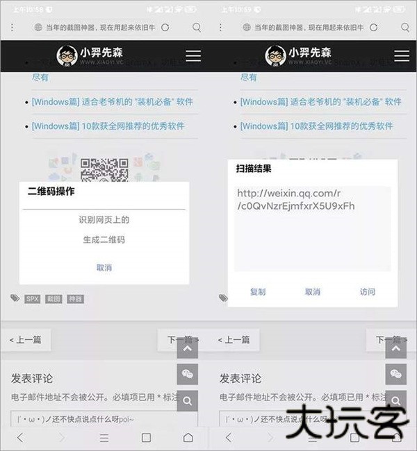 通常我们在手机网页上看到需要二维码识别,可能需要把二维码保存后,通过其它二维码识别软件来识别,而现在「米侠浏览器」只需要长按就能直接识别了,很方便。
