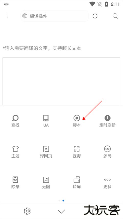 1、用户浏览器的界面中点击底部的扩展功能图标后点击【脚本】