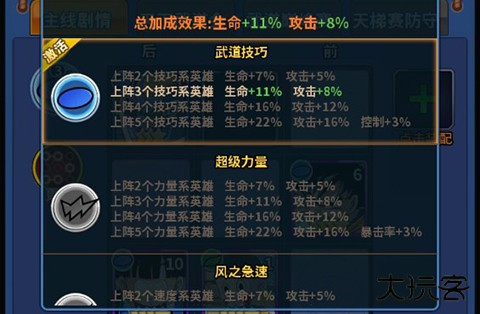 4、玩家通过上阵阵营英雄还能获得额外属性加成,增加大量战力。