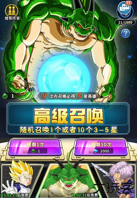 1、游戏内召唤是获取英雄最直接的方式,有普通、高级、友情三大招募方式,点击即可抽取。
