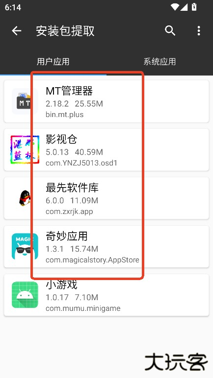 7、例如选择安装包提取进入,可以选择需要提取的应用