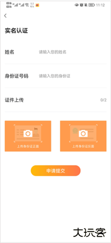 4、输入姓名、身份证号码、证件上传,点击【申请提交】。
