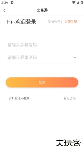 在交易游登录页面中输入自己注册时的手机号和密码即可登录,也可以选择收集验证码登录。