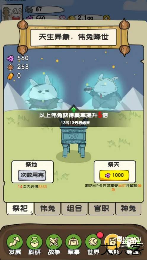 6、通过祭祀获得传奇伟兔,获得强力的技能效果。