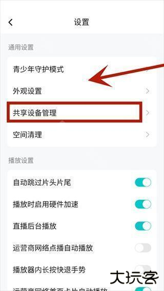 在新的页面中,找到并点击【共享设备管理】这个选项。