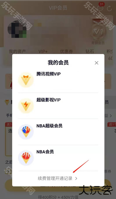 第2步:点击后弹出我的会员管理页面,点击下方的【续费管理开通记录】。
